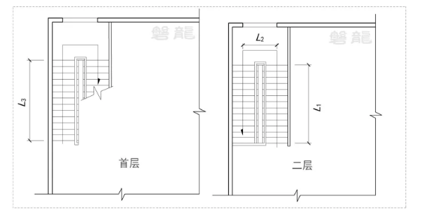 【图示3】所示的室内楼梯,梯段和休息平台部分的疏散距离为:L=1.5×L1+L2+1.5×L3。